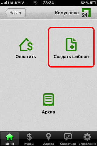 8. Теперь Ваш шаблон готов. Достаточно зайти в раздел "Комуналка" и выбрать раздел "Оплатить".